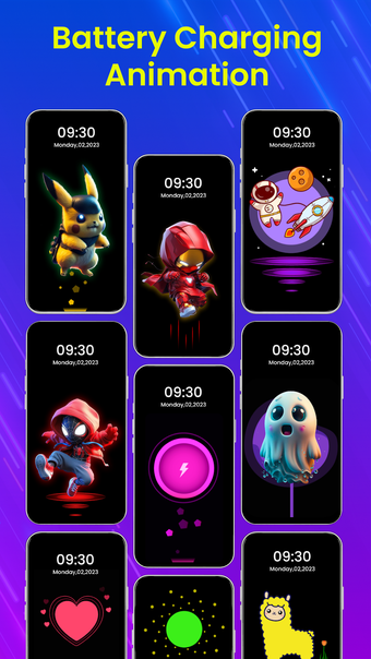 عندما تقوم بتوصيل هاتفك بالشاحن، يعرض تطبيق Battery Charging Animation رسومات مبهجة على شاشتك. من الشخصيات الكرتونية اللطيفة والمحبوبة إلى الرسومات الدائرية الجذابة، هناك العديد من الثيمات للاختيار من بينها. يمكنك حتى تحويل صورة من معرض الصور الخاص بك إلى تأثير عند شحن البطارية، مما يضيف لمسة شخصية للتجربة.